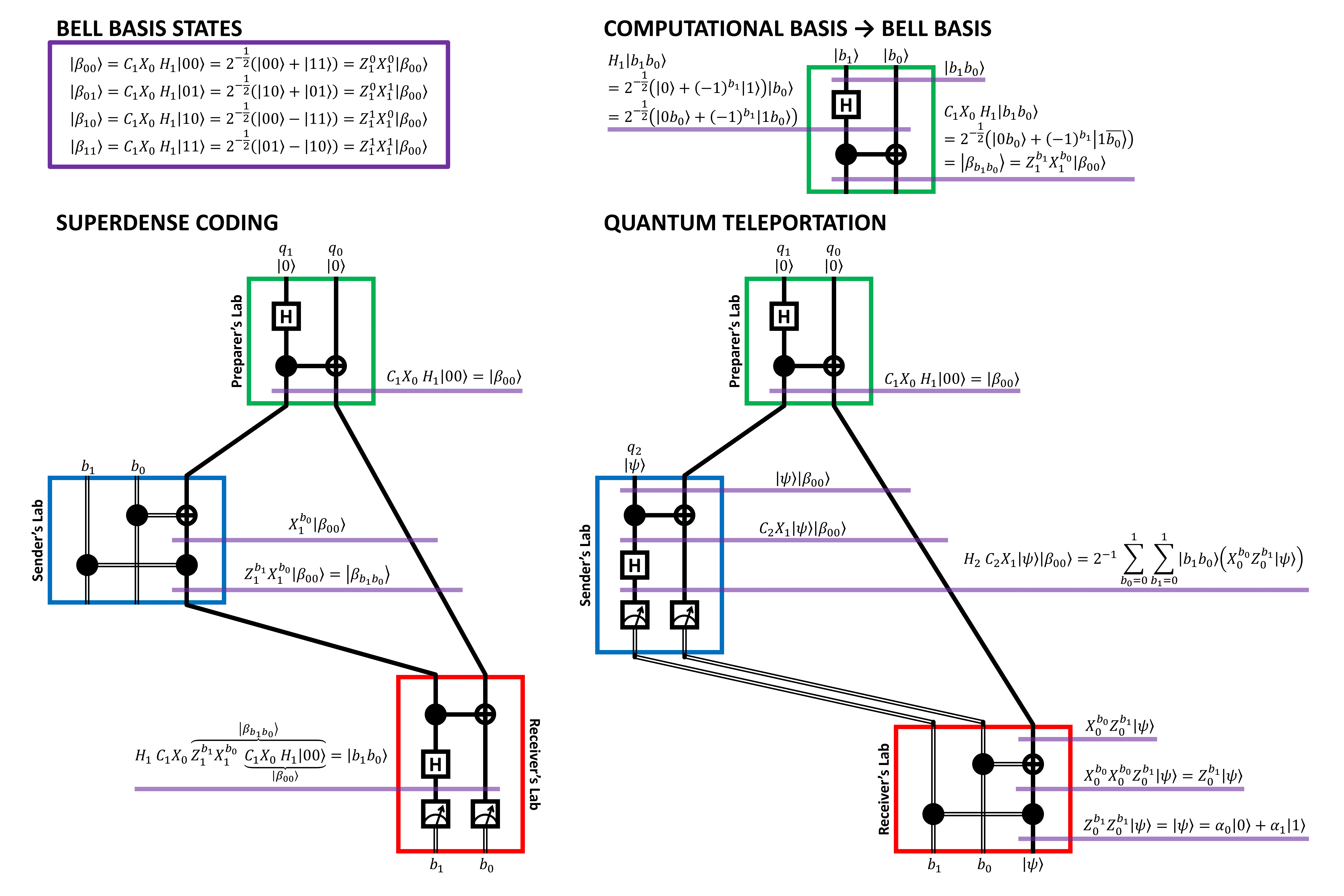 The 4 Bell states form an orthonormal basis called the Bell basis. Explore applications of the Bell basis in this side-by-side comparison of quantum teleportation and superdense coding: