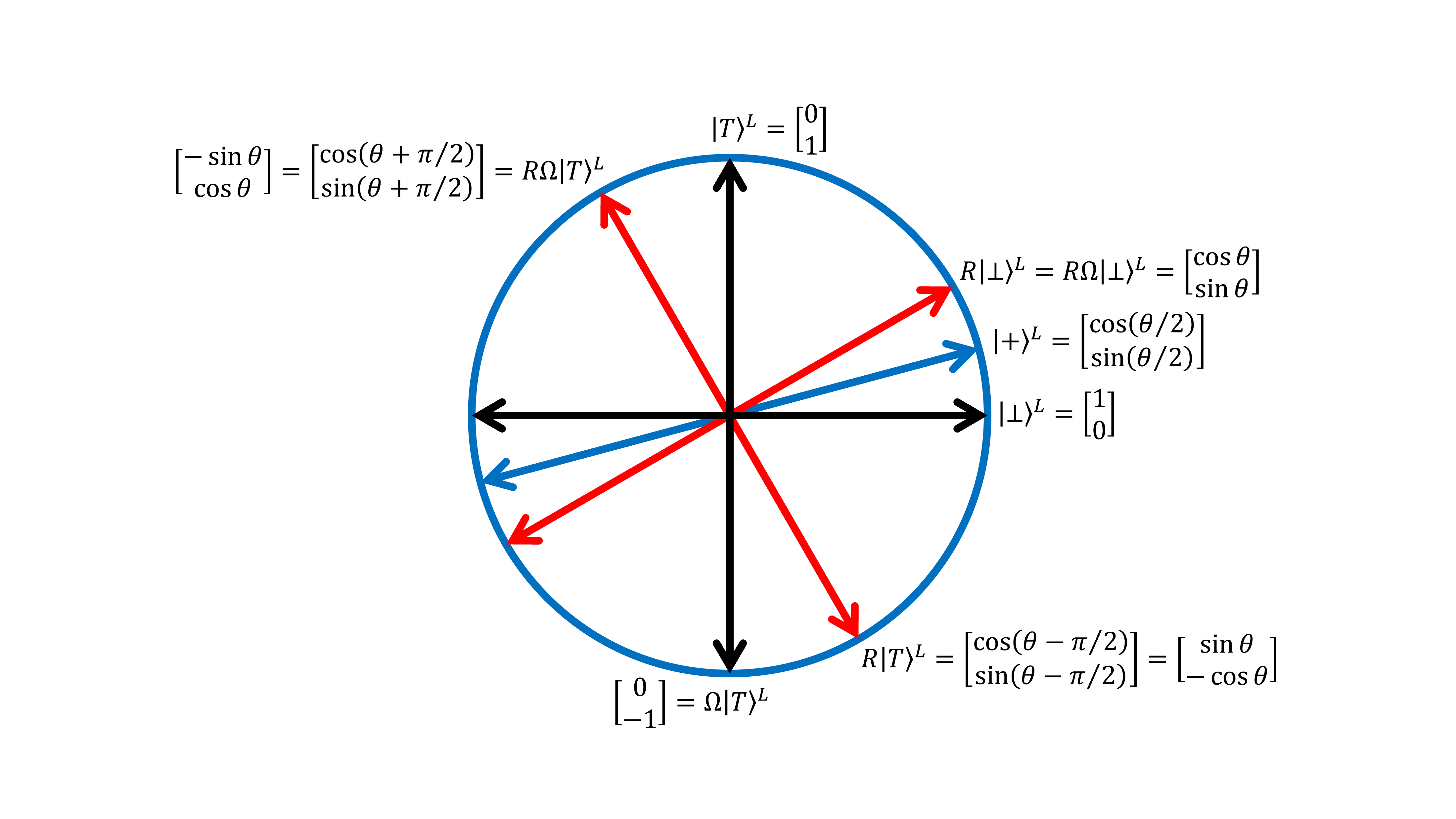 Does the quantum search algorithm still work with an equal number of targets and non-targets? Iterative rotations preserve the original 1/2 probability for measuring a target state. Instead of amplitude amplification, there is amplitude preservation. This is why \(\beta\) must be chosen such that \(|T|<2^{\beta -1}\). Explore a geometric visualization of this limiting case for quantum search: