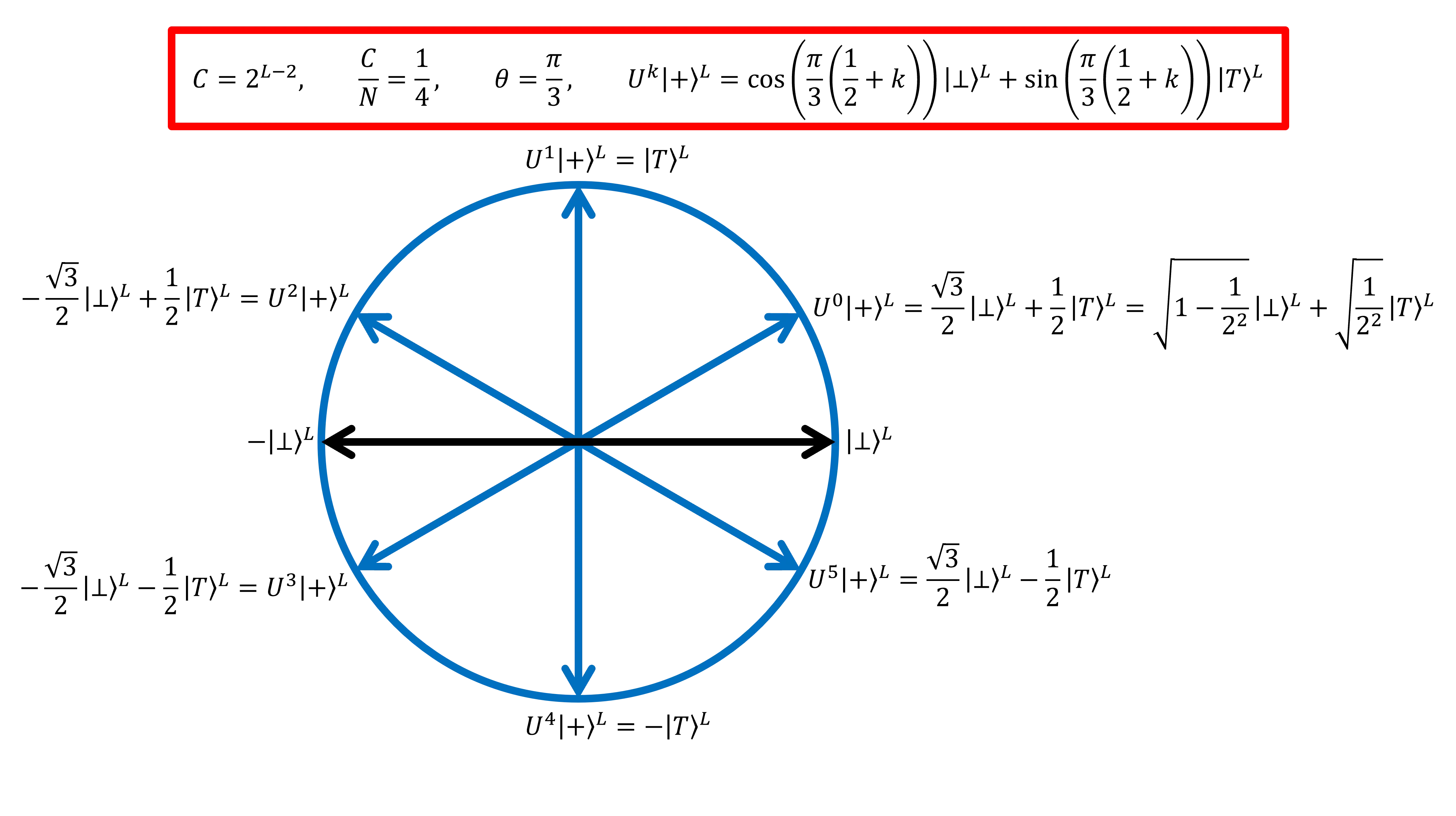 The \(a\)-multiplier \(U_a\) and \(p\)-multiplier \(U_p\) are operators with the properties, $$ U_a\ket{\underbrace{f_1(z)}_{a^z}}^\beta = \ket{\underbrace{f_1(z+1)}_{a^z\times a=a^{z+1}}}^\beta, \quad U_p\ket{\underbrace{f_1(z)}_{a^z}}^\beta = \ket{\underbrace{f_1(z+s)}_{a^z\times p=a^{z+s}}}^\beta, \quad U_a^s=U_p,$$ with the eigenstates, $$ U_a\ket{\lambda(\zeta)}^\beta = e^{2\pi i \zeta r^{-1}}\ket{\lambda(\zeta)}^\beta, $$ which can be combined in the superposition of \(a\)-multiplier eigenstates, \begin{align*} U_a^z\ket{f_1(0)}^\beta=\ket{f_1(z)}^\beta&= \frac{1}{\sqrt{r}}\sum\limits_{\zeta \in\mathbb{Z}_{r}} e^{2\pi i z\zeta r^{-1}}\ket{\lambda(\zeta)}^\beta. \end{align*} \(z\) iterations of the \(a\)-multiplier and \(h\) iterations of the \(p\)-multiplier can produce the state, \begin{align*} U_p^h U_a^z\ket{1}^\beta=\ket{a^z p^h}^\beta=\ket{f_2(z,h)}^\beta=\ket{f_1(z+sh)}^\beta =\frac{1}{\sqrt{r}}\sum\limits_{\zeta \in\mathbb{Z}_{r}} e^{2\pi i (z+sh)\zeta r^{-1}}\ket{\lambda(\zeta)}^\beta. \end{align*} To perform the quantum order-finding algorithm, repeatedly prepare and measure the quantum state, \begin{align*} &\frac{1}{\sqrt{2^\alpha}}\sum\limits_{z \in\mathbb{Z}_{2^\alpha}} F^\dagger_{2^\alpha} \ket{z}^\alpha \ket{f_1(z)}^\beta \\ &=\frac{1}{\sqrt{2^\alpha}}\sum\limits_{z \in\mathbb{Z}_{2^\alpha}}\frac{1}{\sqrt{2^\alpha}}\sum\limits_{x \in\mathbb{Z}_{2^\alpha}} e^{-2\pi i zx 2^{-\alpha}} \ket{x}^\alpha \frac{1}{\sqrt{r}}\sum\limits_{\zeta \in\mathbb{Z}_{r}} e^{2\pi i z\zeta r^{-1}}\ket{\lambda(\zeta)}^\beta \\ &=\frac{1}{\sqrt{r}}\sum\limits_{\zeta \in\mathbb{Z}_{r}}\sum\limits_{x \in\mathbb{Z}_{2^\alpha}} 2^{-\alpha}\sum\limits_{z \in\mathbb{Z}_{2^\alpha}}\left(e^{2\pi i\left(\zeta r^{-1}-\left(x+\left[\zeta r^{-1}\right]\right)2^{-\alpha}\right)}\right)^z \ket{x+\left[\zeta r^{-1}\right]}^\alpha \ket{\lambda(\zeta)}^\beta \\ &\approx\frac{1}{\sqrt{r}}\sum\limits_{\zeta \in\mathbb{Z}_{r}} \ket{\left[\zeta r^{-1}\right]}^\alpha \ket{\lambda(\zeta)}^\beta. \end{align*} To perform the quantum discrete logarithm algorithm, repeatedly prepare and measure the quantum state, \begin{align*} &\frac{1}{\sqrt{2^\alpha}}\sum\limits_{z \in\mathbb{Z}_{2^\alpha}} F^\dagger_{2^\alpha} \ket{z}^\alpha \frac{1}{\sqrt{2^\alpha}}\sum\limits_{h \in\mathbb{Z}_{2^\alpha}} F^\dagger_{2^\alpha} \ket{h}^\alpha \ket{f_2(z,h)}^\beta \\ &=\frac{1}{\sqrt{2^\alpha}}\sum\limits_{z \in\mathbb{Z}_{2^\alpha}}\frac{1}{\sqrt{2^\alpha}}\sum\limits_{x \in\mathbb{Z}_{2^\alpha}} e^{-2\pi i zx 2^{-\alpha}} \ket{x}^\alpha \frac{1}{\sqrt{2^\alpha}}\sum\limits_{h \in\mathbb{Z}_{2^\alpha}}\frac{1}{\sqrt{2^\alpha}}\sum\limits_{y \in\mathbb{Z}_{2^\alpha}} e^{-2\pi i hy 2^{-\alpha}} \ket{y}^\alpha \frac{1}{\sqrt{r}}\sum\limits_{\zeta \in\mathbb{Z}_{r}} e^{2\pi i (z+sh)\zeta r^{-1}}\ket{\lambda(\zeta)}^\beta \\ &=\frac{1}{\sqrt{r}}\sum\limits_{\zeta \in\mathbb{Z}_{r}} \sum\limits_{x \in\mathbb{Z}_{2^\alpha}} 2^{-\alpha}\sum\limits_{z \in\mathbb{Z}_{2^\alpha}}\left(e^{2\pi i\left(\zeta r^{-1}-\left(x+\left[\zeta r^{-1}\right]\right)2^{-\alpha}\right)}\right)^z \ket{x+\left[\zeta r^{-1}\right]}^\alpha \\ &\quad\sum\limits_{y \in\mathbb{Z}_{2^\alpha}} 2^{-\alpha}\sum\limits_{h \in\mathbb{Z}_{2^\alpha}}\left(e^{2\pi i\left(s\zeta r^{-1}-\left(y+\left[s\zeta r^{-1}\right]\right)2^{-\alpha}\right)}\right)^h \ket{y+\left[s\zeta r^{-1}\right]}^\alpha \ket{\lambda(\zeta)}^\beta \\ &\approx\frac{1}{\sqrt{r}}\sum\limits_{\zeta \in\mathbb{Z}_{r}} \ket{\left[\zeta r^{-1}\right]}^\alpha \ket{\left[s\zeta r^{-1}\right]}^\alpha \ket{\lambda(\zeta)}^\beta. \end{align*} The order \(r\) and the discrete logarithm \(s\) can be determined after repeated measurement of the \(\alpha\)-qubit registers, since \(\left[\zeta r^{-1}\right]\) and \(\left[s\zeta r^{-1}\right]\) are \(\alpha\)-bit approximations of \(2^{\alpha}\zeta r^{-1}\) and \(2^{\alpha}s\zeta r^{-1}\), respectively. In the quantum algorithms for counting targets, order-finding and discrete logarithms, the amplitudes are described by an expression of the form, \[2^{-\alpha}\sum\limits_{z \in\mathbb{Z}_{2^\alpha}}\left(e^{2\pi i\left(\omega-\left(x+\left[\omega\right]\right)2^{-\alpha}\right)}\right)^z =2^{-\alpha}\frac{1-e^{2\pi i\left(\omega-\left(x+\left[\omega\right]\right)2^{-\alpha}\right)2^{\alpha}}}{1-e^{2\pi i\left(\omega-\left(x+\left[\omega\right]\right)2^{-\alpha}\right)}}\] where \(\omega=\pm\frac{\theta}{2\pi},\zeta r^{-1},s\zeta r^{-1}\) in these 3 examples. The absolute square of this expression is \[2^{-2\alpha}\frac{\left|\sin{\left(\pi \left(\omega-\left(x+\left[\omega\right]\right)2^{-\alpha}\right)2^{\alpha}\right)}\right|^2}{\left|\sin{\left(\pi \left(\omega-\left(x+\left[\omega\right]\right)2^{-\alpha}\right)\right)}\right|^2},\] which peaks when \(x=0\) for sufficient choice of \(\alpha\), leaving non-zero \(x\) values with negligible probabilities.